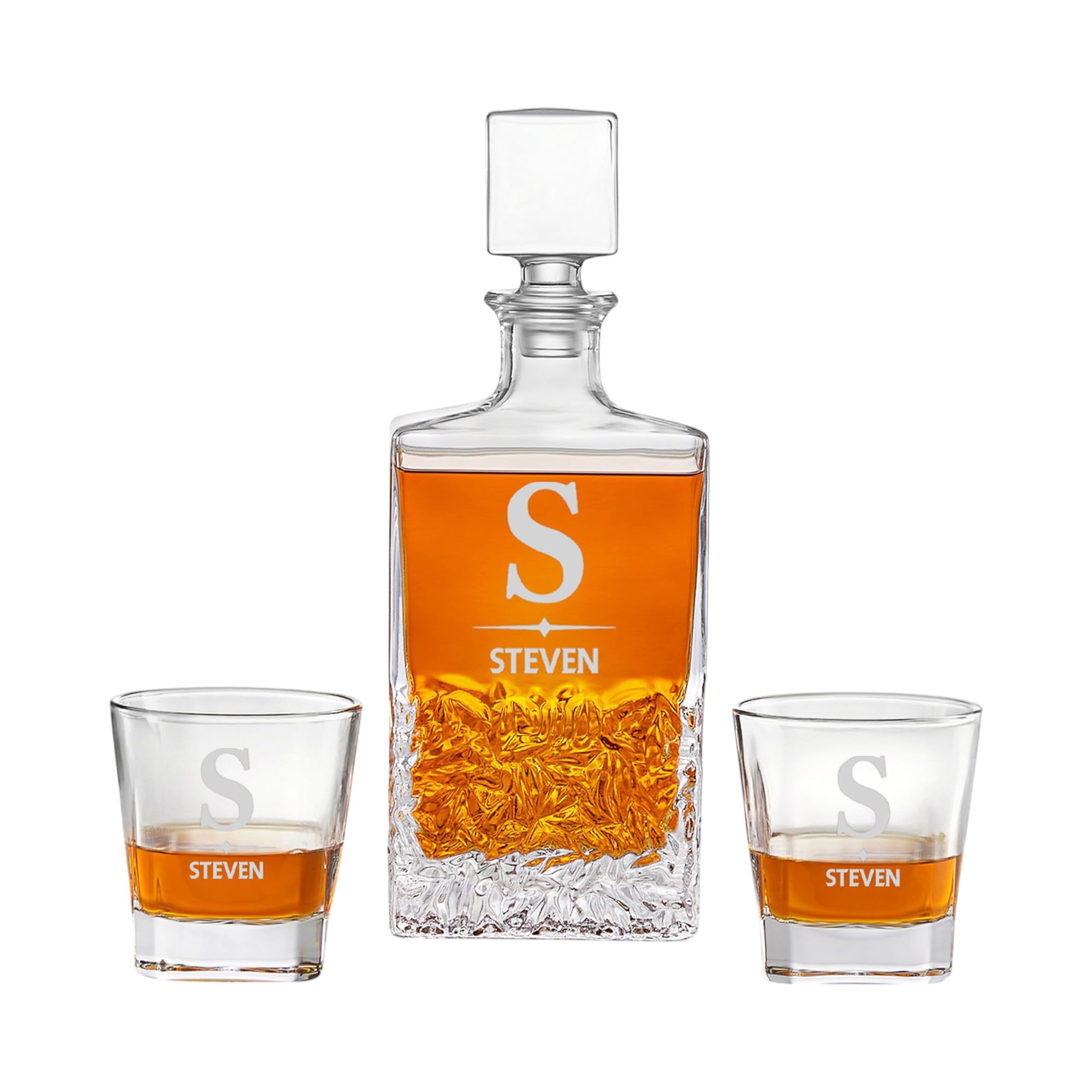 - PREMIUM SET: Elegant crystal whiskey decanter set includes a personalized decanter, 2 matching glasses, and slate coasters in a luxurious wooden presentation box