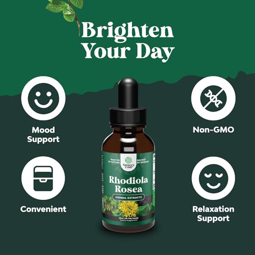Natures Craft High Potency Rhodiola Rosea Tincture -Liquid Rhodiola Supplement for Stress Energy and Mood Support with 3% Salidrosides Rosea Extract - Vegan Non-GMO & Alcohol-Free (60 Servings)