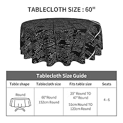 Design Aesthetics - Our Full Width Single-Sided Printed Tablecloth Is Uniquely Designed With Rich Colors And Exquisite Patterns, Aiming To Add Elegance And Charm To Your Dining Environment. This Tablecloth Adopts High-Quality Printing Technology, With Bright Colors That Are Not Easily Faded, And Exquisite Pattern Details, Bringing Unparalleled Decorative Effects To Your Dining Table. Size - Round Tablecloth 60 Inch Is Suitable For 35 Inches To 47 Inches Dining Table, Can Seat 4 People, Give You A Delightful Dining Experience. Home Decor - Add Flair To Your Home Decor With Colorful Tablecloth. Perfect For Family Dinners, Birthday Parties, Weddings, Banquet, Picnic, Bbq, Camping. The Table Top Cover Creates A Sense Of Simplicity And Refinement, Adding A Stylish Atmosphere And Bring Vitality To Space. Exquisite Gift - Tablecloth Is A Great Gift For Housewarming, Birthday, Wedding, Graduation Party, Valentine'S Day, St. Patrick'S Day, Spring, Mother'S Day, Easter, Summer, Independence Day, Fall, Halloween, Thanksgiving, Christmas And Winter For Your Family, Lover Or Friends. Machine Washable â“ Reusable, Colorfast, Wrinkle Free. Low-Temperature Drying And Ironing, Or Hanging. Please Not Bleach.