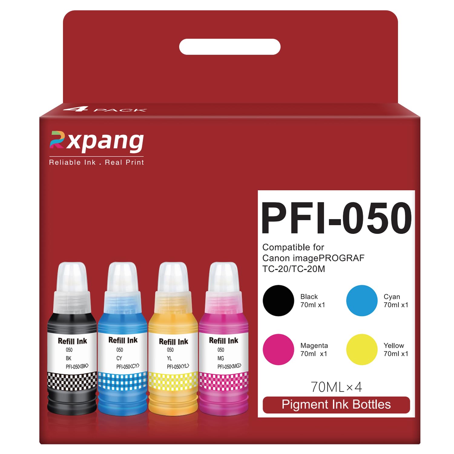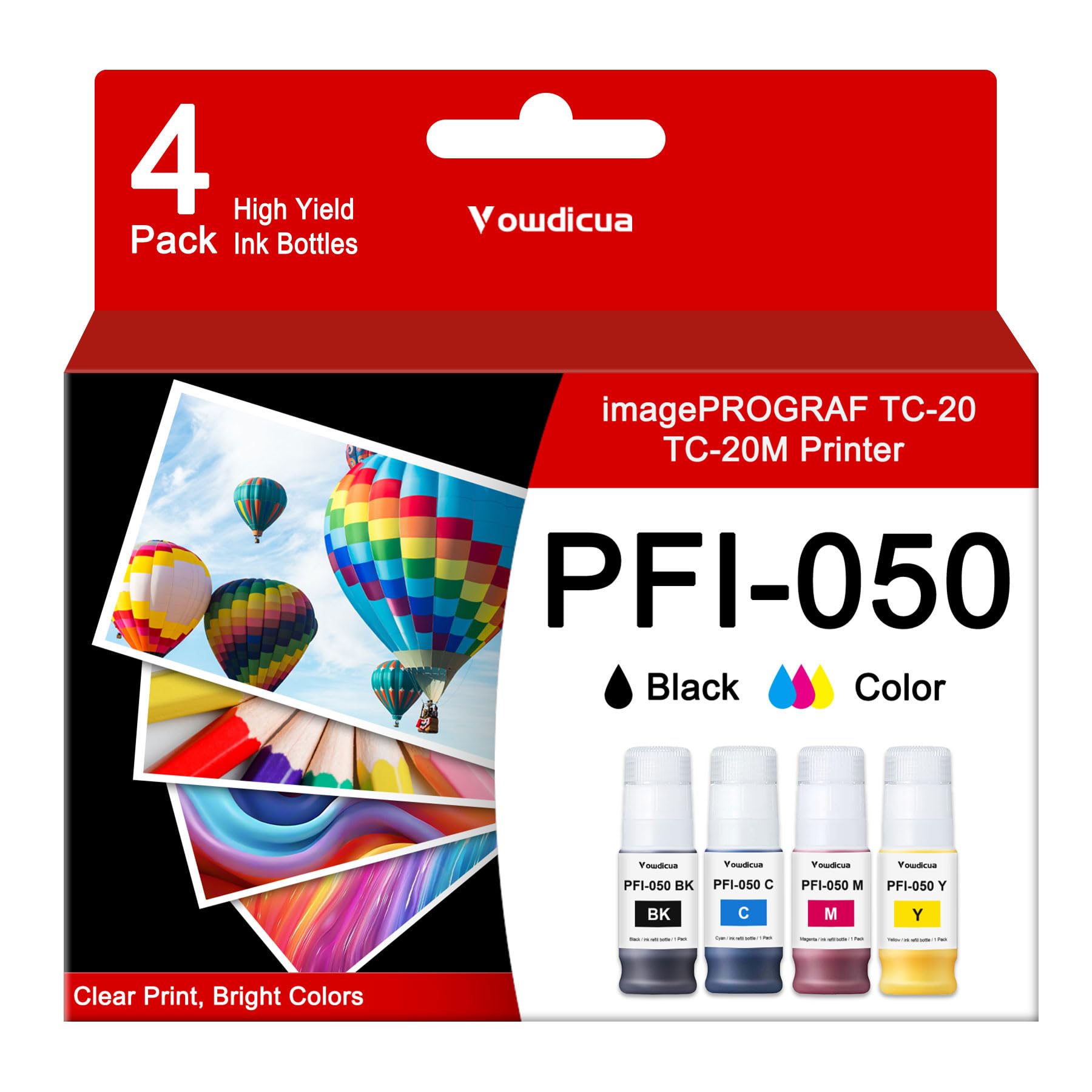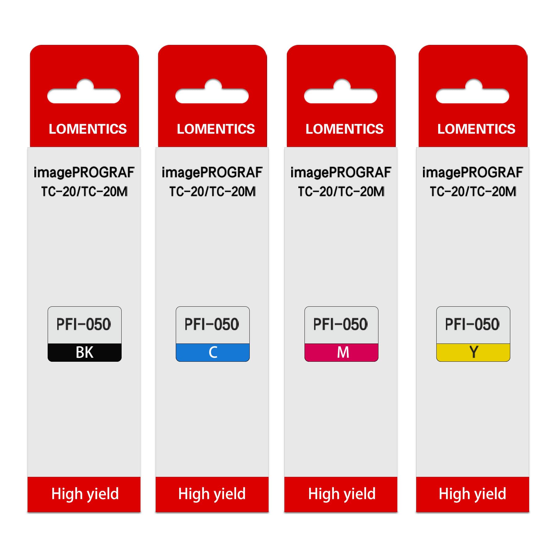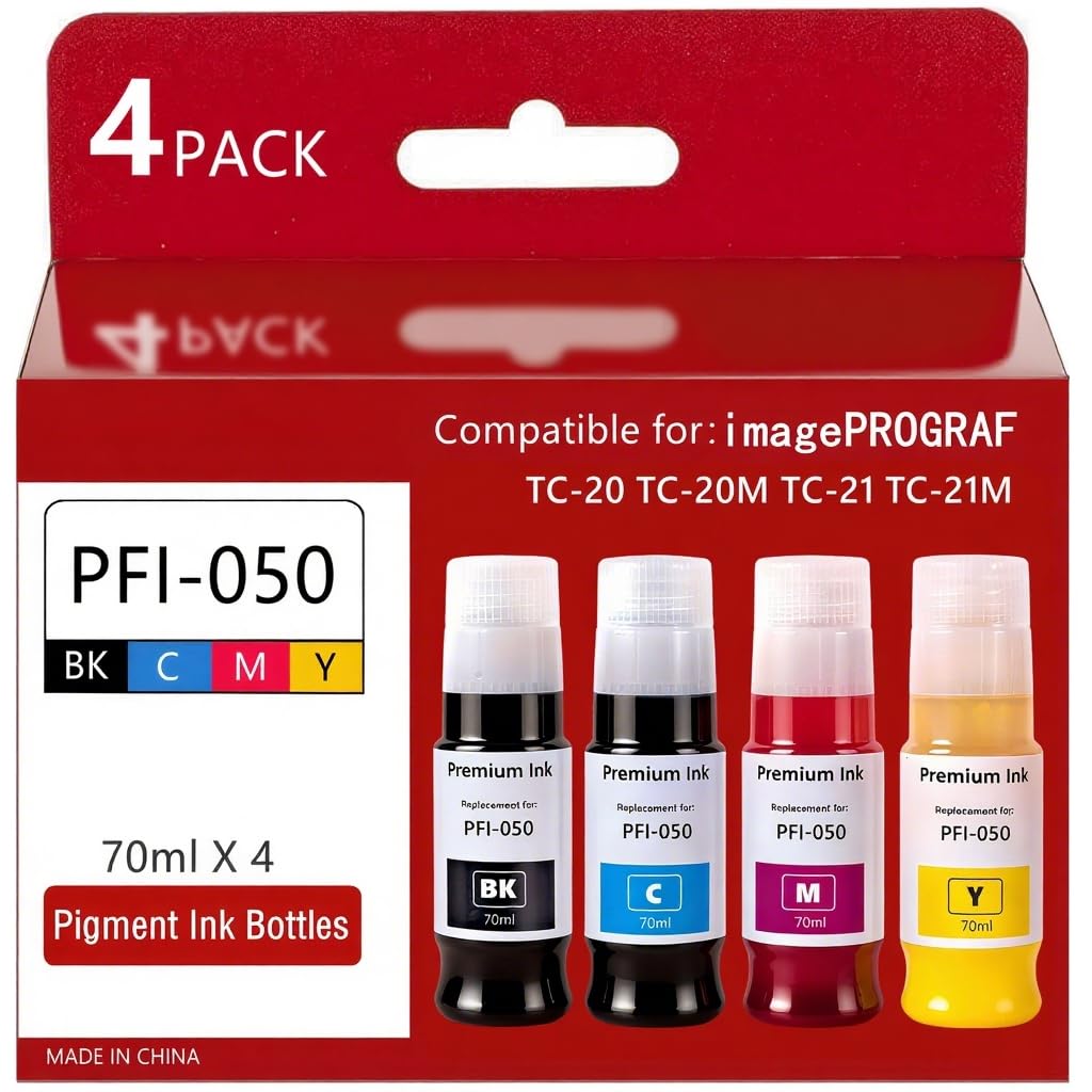 PFI-050 PFI050 Ink Cartridge Compatible for Canon imagePROGRAF TC-20 TC-20M Printer for Canon PFI-050 4 Pack 70ML (Black/Cyan/Magenta/Yellow)