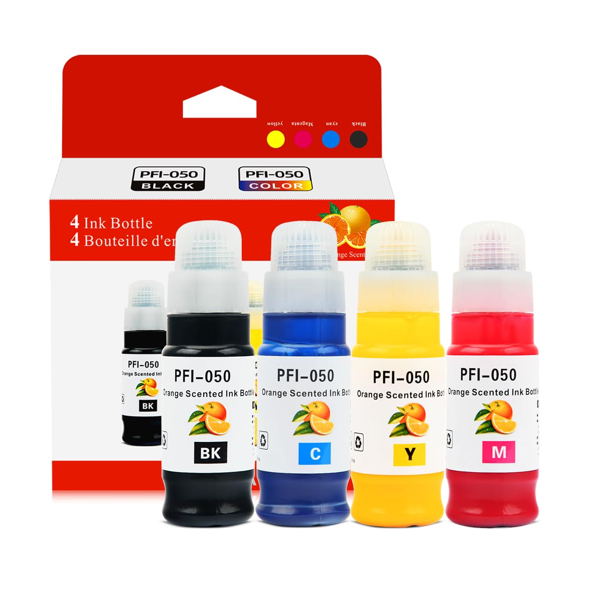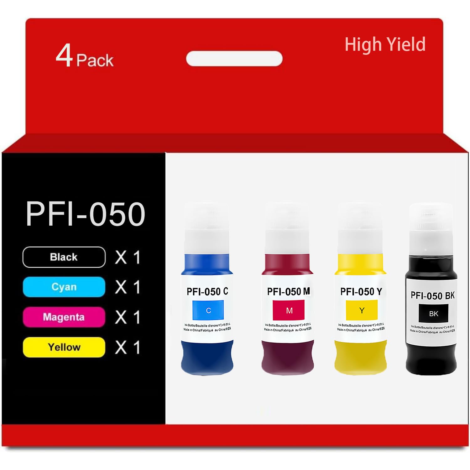 - This Item Includes: 4 Pack of PFI-050 (PFI-050BK Black x1, PFI-050C Cyan x1,PFI-050M Magenta x1, PFI-050Y Yellow x1)