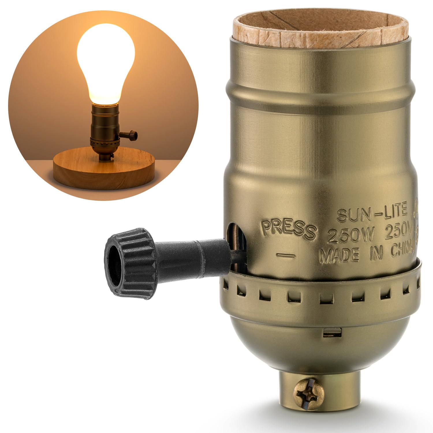 Lamp Socket Replacement, E26 Threaded Base, Turn Knob for ON/Off Light Settings, Lamp Parts for Table and Floor Lamps Repair, Dimmable Light Bulb Socket with Lamp Switch (Gold)