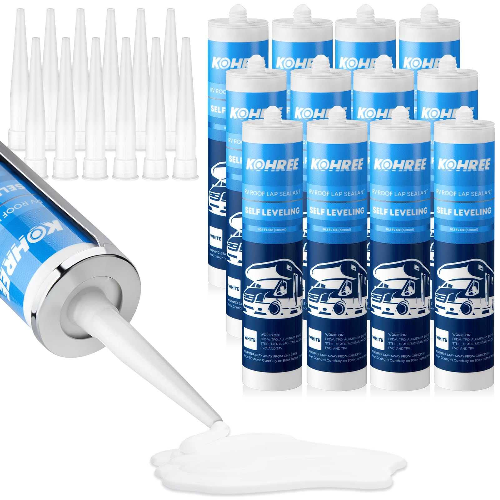 Kohree RV Roof Sealant 4 Pack, Self-Leveling Lap Sealant White, RV Caulking for Roofing, Maintenance, Repair