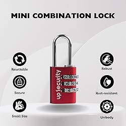 - Keep your valuables safe and secure with the UP Security 3-Digit Combination Lock. Designed with travelers and everyday users in mind, this compact padlock features a resettable 3-digit code system that eliminates the need for keys. Made from premium anodized aluminum with a strong steel shackle, it's built to withstand daily wear while offering reliable protection for your belongings. Whether you're locking up a suitcase at the airport, a gym bag at the fitness center, or a toolbox in your garage, this mini combo lock is your go-to security solution. Its slim profile and lightweight design make it easy to carry in your pocket or backpack without adding bulk. Simple to use, tough to crack—UP Security delivers peace of mind wherever life takes you.