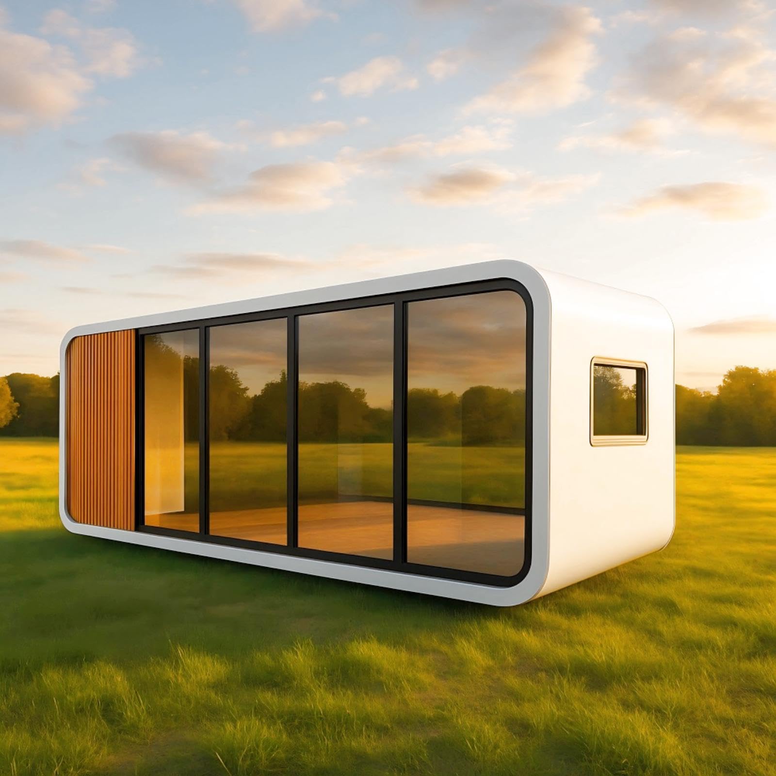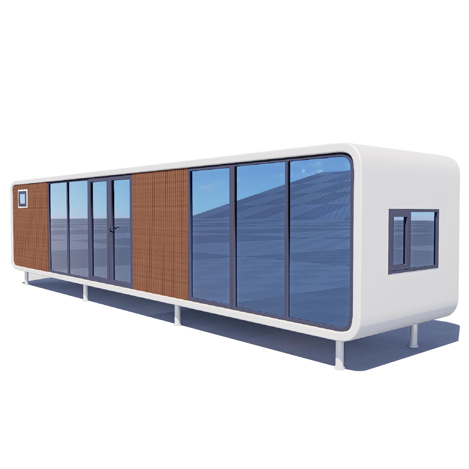 - Live in Comfortable - This prefab tiny home features 10 standard large windows, 1 smaller window for shower room, and 1 glass entry door, all strategically placed for optimal natural lighting throughout the interior. The windows and doors are made of broken bridge aluminum, and the exterior walls and roof are insulated with flame-retardant foam panels, providing excellent thermal insulation and soundproofing.