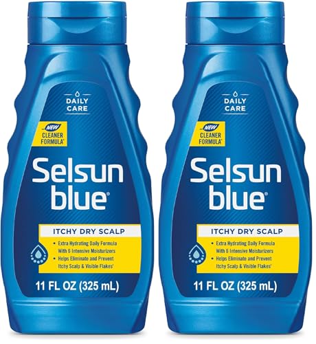 Champú Anti-caspa para cuero cabelludo seco con picazón Selsun Blue, 11 fl. oz., Fórmula extra hidratante, Piritiona de zinc 1% (Pack de 2)