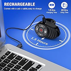 【USB A&Type C Receiver In One Finger Ring Presenter】Dual-head design accommodates a wide range of devices, from laptops to modern tablets, ensuring maximum compatibility. Lightweight and compact ring-shaped design with comfortable silicone buttons, making it easy to carry and use anywhere.Convenient to wear on finger,enable to write ,gesture or hold things without removing it 【Intuitive Controls Experience Smooth Presentations】Effortlessly navigate your presentation with simple controls for next/previous slide,full screen/black screen, and volume adjustment.Ensuring you always deliver your presentations with ease and confidence 【Rechargeable &Indicator Lights】Built-in 200mAh lithium battery charges fully in just 1.5 hours and offers one week of use time. Indicator lights show charging status (red light while charging, off when fully charged) and low battery warning (blue light flashing every second) 【Long Distance Wireless Range】Enjoy a 100FT wireless control coverage, providing you the freedom to move around and interact with your audience without stucking behind the computer.328FT Red Laser of the slideshow clicker clear for highlighting key points even in large rooms 【Wide Compatibility】Compatible with Windows XP, 7, 8, 10 and higher versions, Mac iOS 3 and higher versions, Linux, and Android 4.3 or higher versions. Supports general presentation software like PowerPoint, Keynote, Prezi