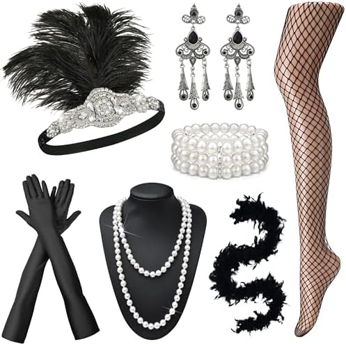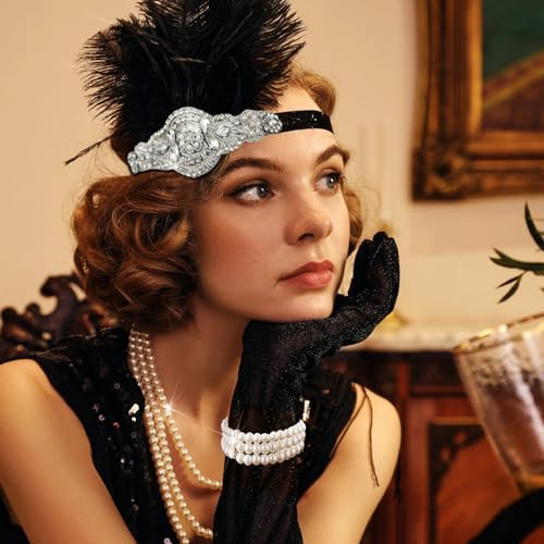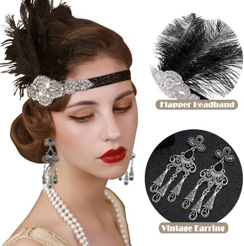 EIELO 1920s Great Gatsby Accessories Set for Women Headpiece Headband Flapper Roaring 20s Costume Accessories