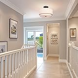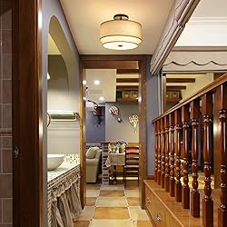CLASSIC FABRIC CEILING LIGHT: The ceiling light fixtures combine the classic elegance to modern decor style. Complete with a double drum shade that adds to the overall elegance of the ceiling light, which reserves its modern flair while showing more light effects. PERFECT SIZE & 3 E26 SOCKETS: The light fixture measures 9.8 inches (H) x 12.59 inches (D), Shade: 4.7 inches (D). Perfect size provides plenty of ambient light without sacrificing too much space. The flush mount light fixture holds 3 E26 sockets and three different lighting angles to maximize the light in your house. (Bulbs not include PREMIUM QUALITY: The flush mount ceiling light is made of top quality durable metal and well-made white fabric, no need to worry about rust, corrosion or fading. The delicate fabric softens the light and protects your eyes while keeping your space comfortable and pleasant. WIDELY USED: The semi flush mount ceiling light can match any home decor, suitable for any space, such as hallway, entrance, living room, bedroom, basement, bathroom, kitchen, also perfect for commercial lighting in restaurants, cafes. EASY INSTALLATION: All necessary mounting hardware is included in the package, saving you the trouble of searching for compatible accessories. This hallway light fixture can be a thoughtful gift for a stylish friend or loved one who needs a little more light in their home.