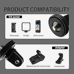 Clip mount for go pro made high quality plastics, more sturdy and tighter. The backpack strap mount for gopro allows for 360 degree rotation and 90 degree tilt to get the best visual angle for your Go Pro camera and capture your best shots. This backpack clip mount for go pro adopts quick release design, which can be disassembled in one second. It is very convenient to switch between quick release tripod mount without having to turn screws slowly. The hat clip mount for go pro compatible for Insta360 ACE Pro ONE X5 X4 X3 X2 X RS R GO 2 3, Go Pro Hero 12 11 10 9 8 7 6 5 4 3+ Session Max Fusion and DJI OSMO Action 4 3 2 etc other most action cameras. This accessory compatible with Insta360, ideal for walking, hiking, outing etc.
