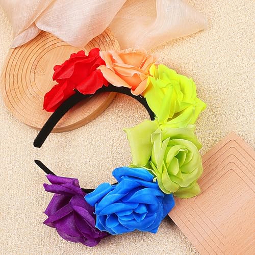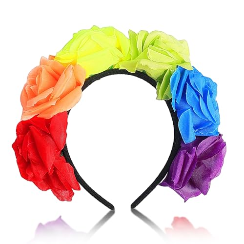 Doneace Pride Rainbow Headband Rose Flower Hairband for Women Girls Multicolor Rose Floral Crown Hair Hoop for Gay Pride Parades Headwear Festival Headdress Accessories 1PCS