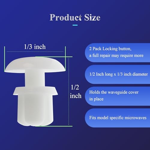 - 🌈【Product Size】(2) Locking button, a full repair may require more | 1/2 Inch long x 1/3 inch diameter | Holds the waveguide cover in place | Fits model specific microwaves.