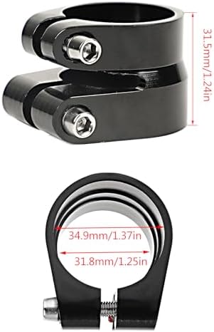 Seat Post Clamp Secure Your Post with Ease Seatpost Clamp Double Fixation Clamp Easy to Use Easy to installFeatures:Keep your seat post secure with this Seatpost Clamp. Its double layer aluminum alloy constructions ensures a hold, perfect for cyclists of all levels.Crafted from quality materials, this Seatpost Clamp is built to with stand heavy use without compromising on weight. Its double fixation designs provides stability, keeping your seat post firmly in place.Designed for 31.8mm/34.9mm seatposts, this Seatpost Clamp caters to wide ranges of cycling enthusiasts who value stability and reliability. Whether you are casual riders passionates cyclist, this clamp will meet your needs.Enhances your cycling experience with this essential accessory. The Seatpost Clamp ensures a secure grip on your seat post, allowing for comfortable rides on any terrain.Upgrades your setups with this dependable Seatpost Clamp. Its sturdy build and practical designs make it a valuable addition to any cyclist gear. Ride confidently and enjoy the thrill of your journey!Specifications:Material:Aluminum AlloyUpper Inner Diameter:Approx.31.8mm/1.25in,Lower Inner Diameter:Approx.34.9mm/1.37in,Height:Approx.31.5mm/1.24inPackage Includes:1xBike Seat Post ClampNote:Please allow 1-2cm errors due to manual measurement,please make sure that you do not mind before you order. Due to the difference between different monitors, the picture may not reflect the actual color of the item.