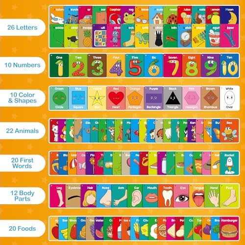 Torlam Toddler Flash Cards Baby Cognitive Flashcards for Kids, Learning Alphabet, Numbers, Shapes & Colors, Animals, First Words, Body Parts, Foods, Preschool Kindergarten Activities Educational Toys