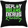 Deploy Dreams Debug Reality Bootstrapping Coder Indie Hacker Throw Pillow