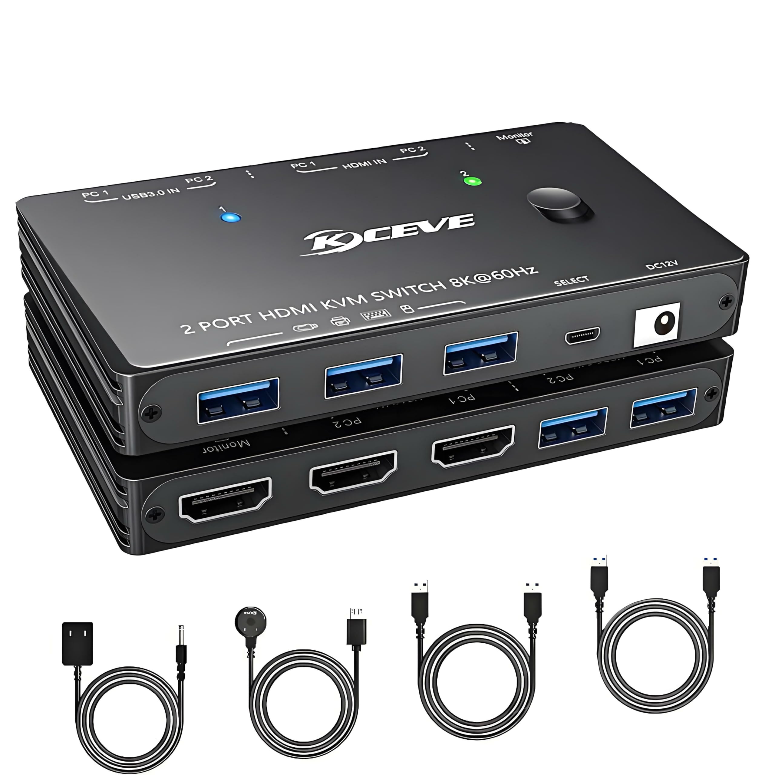 8K HDMI KVM Switch 2 Monitors 2 Computers Dual Monitor Support 8K@60Hz 4K@120Hz, Dual Monitor KVM Switch HDMI 2 Port and 4 USB3.0 Devices,Wired Remote and 12V Power Adapter Included