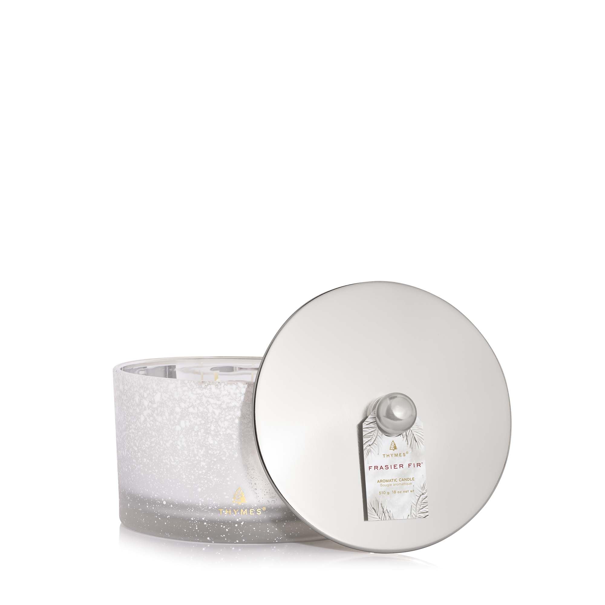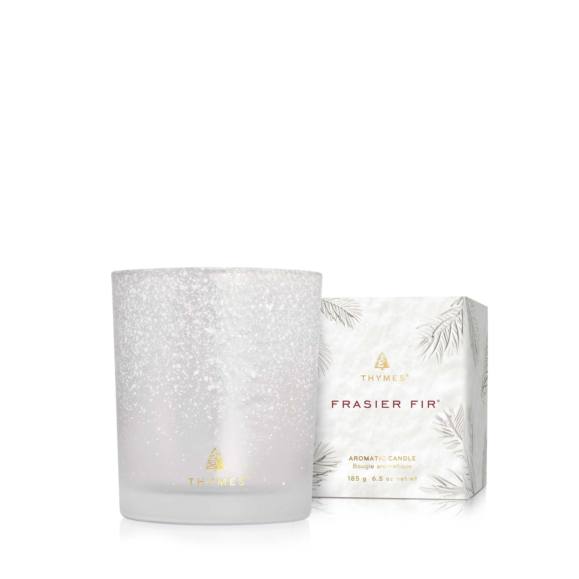 - Thymes Frasier Fir Flocked Votive Candle (2 oz) - A petite size with maximum impact. This pine candle will spread freshness to your home with its elevated flocked glass finish and iconic Frasier Fir fragrance. This stunning white candle will infuse a touch of holiday magic into your home decor.