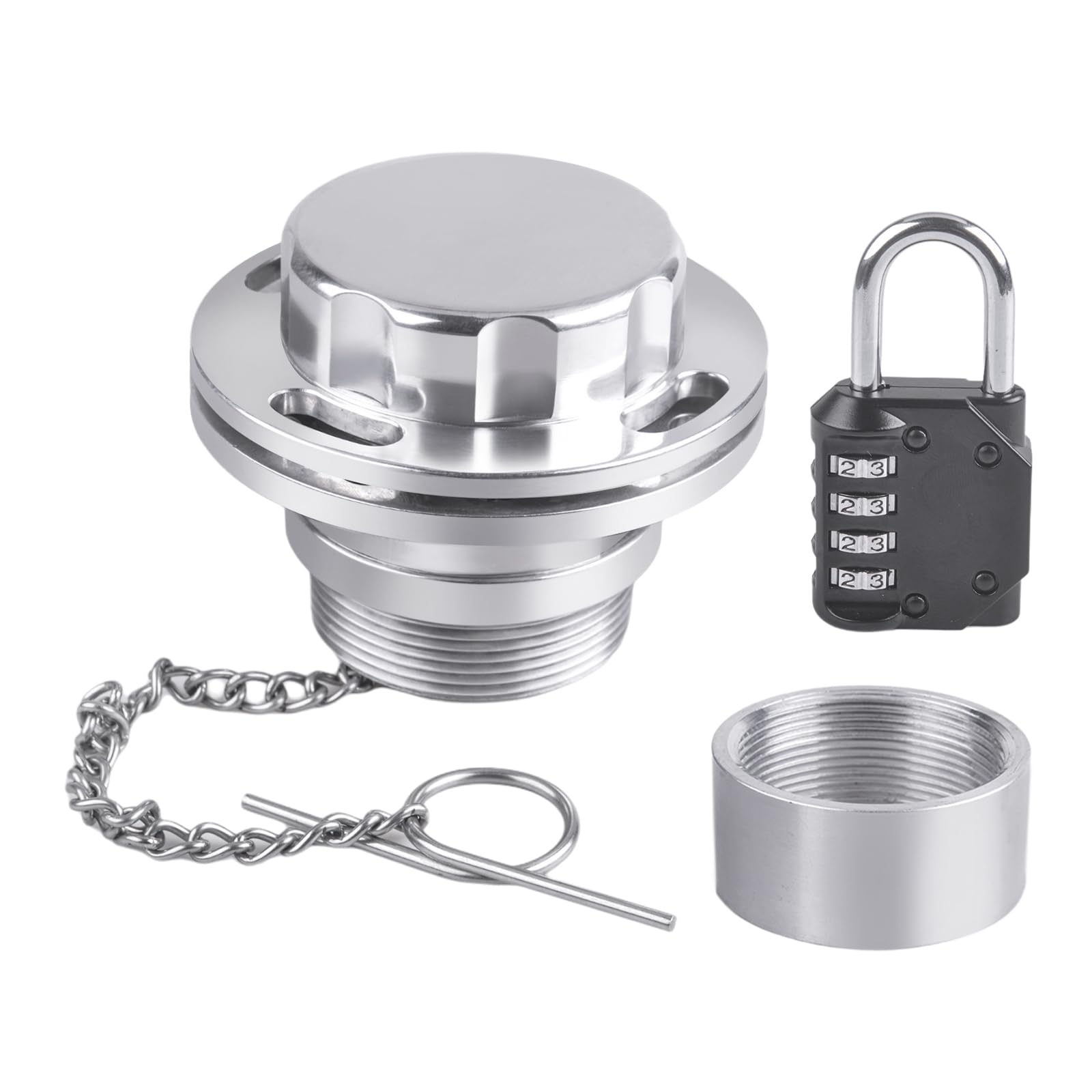 - Added Security for Diesel Tanks Fuel: Lockable diesel fuel tank cap fit for 1/4" - 5/16" diameter shackle padlock (not included), which secure your fuel tanks and prevent costly oil fuel from theft,tampering, siphoning and vandalism. Just put a padlock in lock hole that is right on one of the tabs on the base and the tabs will hold the lock.