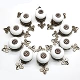 suiwotin 10pcs Ceramic Knobs White Dresser Knobs, Vintage Cabinet Knobs with Antique Bronze Back Plate, Decorative Drawer Knobs Pull Handles for Closet, Cupboard