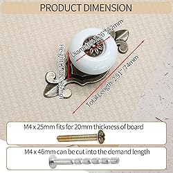 - Ceramic knobs for cabinets and drawers are perfect pull handles and vintage decorations for closet, wardrobe, drawer, dresser, shelf and furniture door knobs. Specifications: Total Length: 2.91"/74mm Height: 1.02"/26mm Diameter: 1.26"/32mm Mounting Screws: M4 x 25mm mounting screws fits for 20mm thickness of board, M4 x 46mm can be cut into the demand length Material: Ceramic, Zinc Alloy Color: White, Antique Bronze Quantity: 10 Pieces Note: Due to manual measurement, please allow a deviation of 1 - 2mm. Please check our product size carefully and read the product size descriptions before purchasing to avoid possible unpleasant shopping experience.