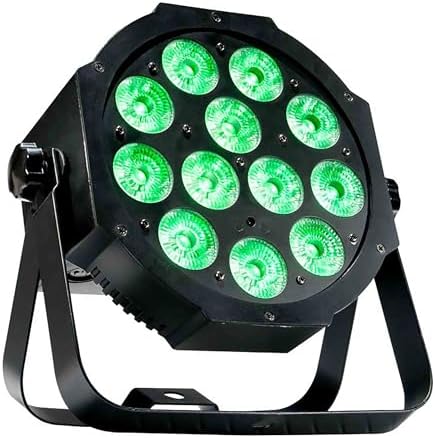 - Source: 12 x 4W Quad (RGB+UV 4-IN-1) LEDs Light output: 3,520 LUX @ 2M; 820 LUX @ 4M (25-degree beam)