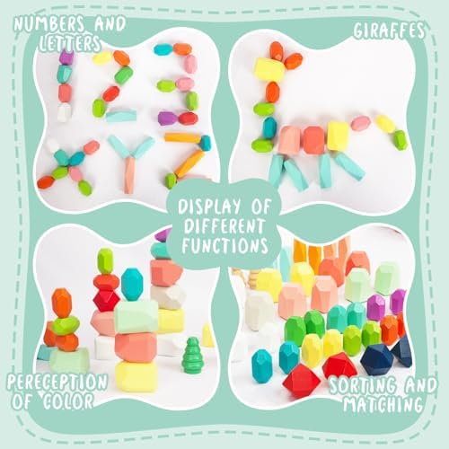 - SKILL DEVELOPING: The stone blocks have many flat cut surfaces so the stones can be stacked and kids can stack different shapes of stones to the highest. Unlike regular building blocks, this wooden stone balancing and stacking game is a better way to stimulate a child's sense of challenge and develop their hands-on skills, promote creativity, resilience and persistence and to strengthen fine motor skills, visual-spatial skills, color recognition and thus training logical thinking.