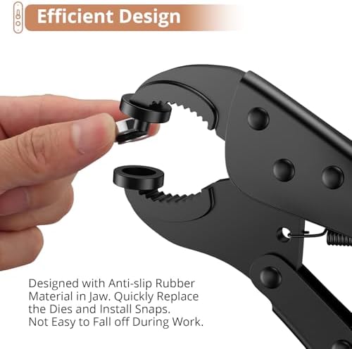 - Premium Material: The professional snap pliers are made of 45# steel, heat-treated for high hardness and wear resistance, ensuring long-term durability. The screws and snaps are made of 304 stainless steel for added strength and corrosion resistance