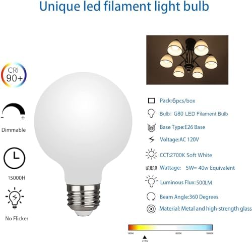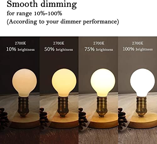 - 【Dimmable】This Milky Glass Globe bulb are compatible with most dimmers by improved technics, adjust the brightness you need smoothly from 10% to 100%, choose the brightness based on different scenes.