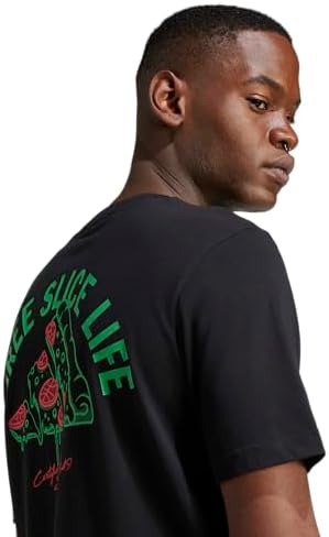 Show off your appetite for life in this adidas graphic tee for men. The lightweight, soft cotton build and classic crewneck are designed for comfort. Graphics on the front and back merge iconic adidas logos with pizza-inspired images.