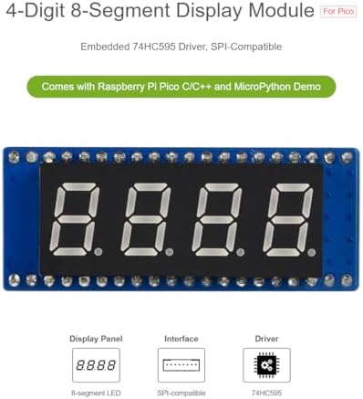 4-Digit 8-Segment Display Module Compatible with Raspberry Pi Pico Embedded 74HC595 Driver SPI-Compatible