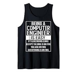 • Funny computer engineer design for your mom, dad, family and friend in christmas, mothers day, fathers day or birthday. Funny computer engineer design saying and quote being a computer engineer is easy it s like riding a bike Except the bike is on fire you are on fire everything is on fire