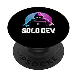Perfect for bootstrapping developers and indie hackers who take pride in coding and creating unique solutions. This design seamlessly blends tech and humor, making it a great conversation starter. Whether you're a solo dev working late into the night or an indie hacker coding your next big idea, this design is a nod to your relentless spirit. Ideal for casual wear or giving as a gift to your coder friends. Funny Solo Dev design. Adhesive backing attaches the PopGrip to your case or device. Will not stick to silicone, leather, waterproof, or highly textured cases. Works best with smooth, hard, plastic cases. Not compatible with wireless charging Printed top is swappable with other compatible PopGrip models. Just press flat, turn 90 degrees until you hear a click and remove to swap.