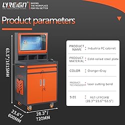 - LYREIGN CNC computer tool cabinet feature stylish design and quality materials. It is best for machine shops, maintenance departments and garages.This cnc tool holder keeper is durable and large-capacity, it can well meet your daily storage needs. Classic, beautiful and elegant, it blends perfectly with its surroundings and leaves a lasting impression. It can bring great convenience to your life. Ideal for garage, warehouse, workshop, repair shop, etc.Product Name: Industrial Computer CabinetMaterial: cold rolled steelModel: Industrial PC Cabinet Size: 28.3"L x 23.6"W x 63.4"HModel: LFPC04WQuantity: 1 pieceWeight: 143.3 lbsLFPC04W CNC tool holder cabinet adopts SPCC high-quality 2.0MM cold-rolled steel square tube, and multiple reinforcements are installed to strengthen the structure. The entire cabinet structure is a cuboid, which makes the BT40 tool holder cabinet very stable. Therefore, most of our BT40 tool racks adopt this structure to increase stability. Heavy duty ball bearing Non-noise wheels and both sides heavy duty foot brakes.