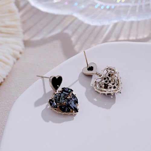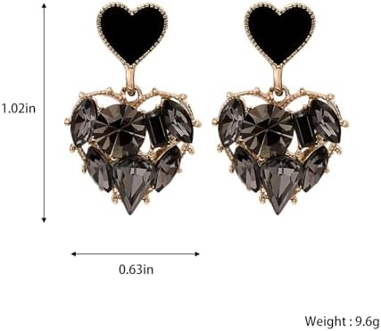 HETICA Double Heart Earrings for Women, Black Cubic Zirconia Heart Drop Earrings Love Heart Dangle Earrings Jewelry Gifts for Women