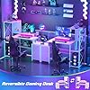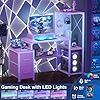 - Computer Desk with Cool Smart LED Lights: Our grey office desk with drawer comes complete with smart RGB LED light strip, provide over 60000 colors & 29 flashing modes. The CCT mode, built-in mic, music sync and timer functions can create a perfect ambiance that enhances your room. You can use APP to change the brightness and color easily.