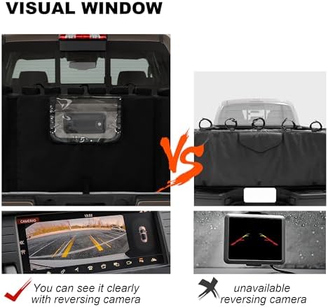 - 【Practical Design】- Two flip-top tool bags can provide rain protection and prevent tools from being lost during driving, and the large-capacity pockets can make the bike mat more suitable for storing tools when going out. The rear opening window design allows easy and unobstructed access to the tailgate handle and rearview camera. Our Tailgate Bike Pad has been upgraded with a visible rear opening window. When reversing on a daily basis, reversing is safe and unobstructed