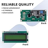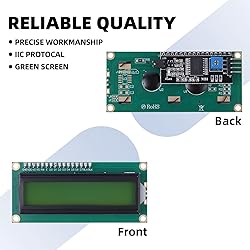 The 16(character)×2(line) LCD display with I2C serial interface backpack can show 16 characters in each of its two rows, providing a total of 32 characters of information. 16 PIN standard interface are used for power supply, data communication, and control signals. Superior Quality. We adopt Lead-free processes and immersion gold PCBs. The lead-free process gives safe of use and assurance. As a chemical process, immersion gold ensures a flat surface of the gold overlay pad, which can longer product life. Working voltage: 5V, Module size:80x36x11mm, Viewing area:64.5x14.5mm. AIP31066 controller. The LCD panel has a Built-in independent potentiometer, backlight can be adjusted through the back potentiometer. You can control the readability of the displayed content. Compatibility: It can be used with all current development boards, such as Arduino, Raspberry pi, Tinkerboard, Nano pi, Banana pi, stm32 and so on. 1602 greenLCD screen are widely used in various applications, including digital clocks, temperature and humidity displays, electronic voting machines, industrial automation, robotics, embedded projects, your own DIY circuits and more.