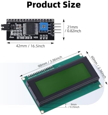 - Superior Quality. We adopt Lead-free processes and immersion gold PCBs. The lead-free process gives safe of use and assurance. As a chemical process, immersion gold ensures a flat surface of the gold overlay pad, which can longer product life. Working voltage: 5V, Module size:98x60x9mm, Viewing area:77x24mm. ST7066U controller.