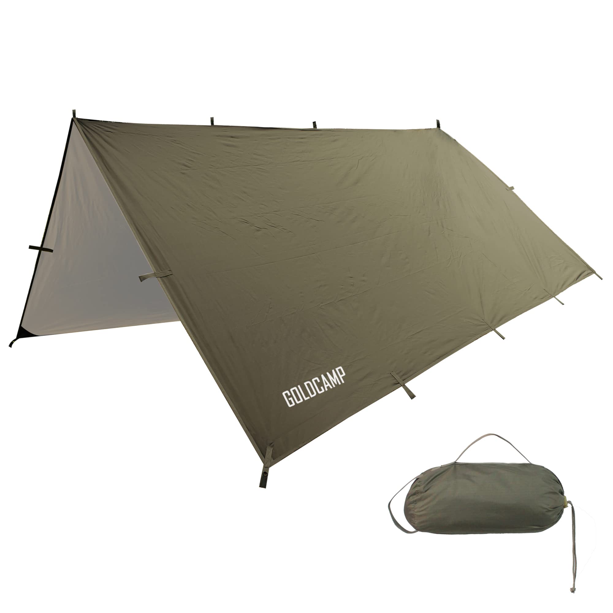 GOLDCAMP Waterproof Camping Tarp,70D Nylon 10X10FT Hammock Rain Fly ,UV 50+ and PU15000mm Tent Tarp Shelter Canopy,Heavy Duty Multifunctional Sun Shade or Rain Fly Essentials for Hiking Backpacking