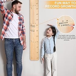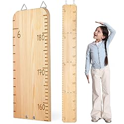 Dual Scale Design: Our height ruler features a dual-scale design, providing measurements in both inches and centimeters; Carved from wood, the scales are clearly marked and designed to last, making it a companion for growth tracking Natural Solid Wood: Our height ruler is made from wood, finely processed for durability and a smooth surface; Handcrafted from natural solid wood, it retains the original texture and color Record Growth Journey: With a writable area in the middle, our height ruler allows you to record your child's height data anytime; Add creativity with colorful pens to make their growth records vibrant Easy Installation: The height ruler is easy to install, equipped with screws, screwdriver, and Non-mark hooks; The Non-mark hooks hanging design is not only beautiful and practical, but also does not damage the wall, making it easy for you to measure or move Height Ruler: Our height ruler is a practical tool for growth tracking; This ruler can accompany your child's growth, leaving unforgettable memories