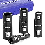 WORKPRO 4PCS Impact Socket Set 1/2" Drive, Lug Nut Socket Set, Wheel Socket Set Cr-Mo Steel, Includes 1PC 3" Extension Bar & 3PSC Flip Sockets of 6 Metric and SAE Sizes