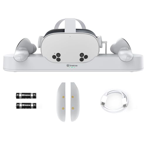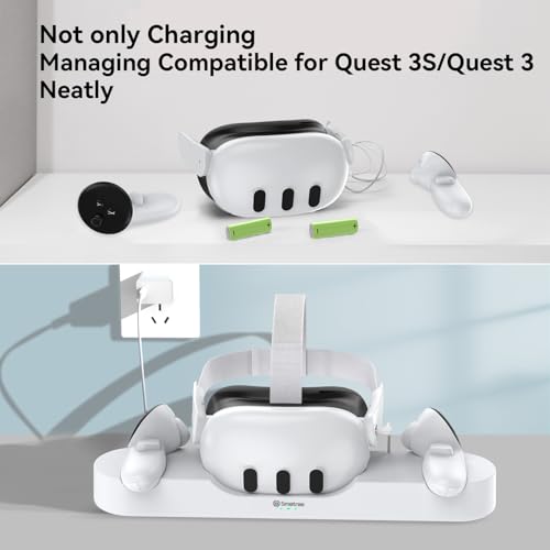 Estación de Carga Smatree Compatible para Meta Quest 3S/Quest 3, Carga Controladores y Auriculares Simultáneamente, Estación de Carga VR con Luz LED, con 2 Baterías Recargables para Controladores (SIN Adaptador)