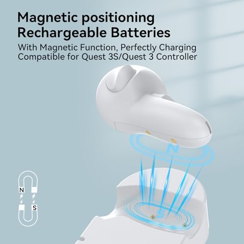 - 2 × 1800 mAh Baterías Recargables y 2000+ Ciclos de Recarga: Nuestro soporte de pantalla para auriculares y soporte para controladores compatible con Quest 3S/Quest 3 tiene 2 × 1800 mA baterías AA recargables para controladores, y puede recargarse hasta 2000+ veces