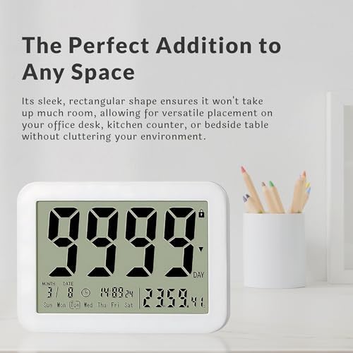 - LONG-TERM COUNTDOWN CAPABILITY: This digital countdown clock allows you to set timers for up to 9,999 days, making it ideal for tracking long-term events such as retirement dates, wedding anniversaries, and more. Stay aware of how much time is left before your big day arrives, ensuring you are always prepared and on track.
