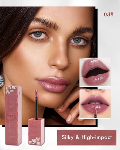 Liquid Lipstick,Shine Vinyl Lipstick Ink Lipgloss,Nude Pink Glossy Tinted Lip Gloss,Highly Pigmented Lip Color,Long Lasting Waterproof Lip Tint Stain,Christmas Makeup Gift for Women Girl-03