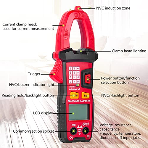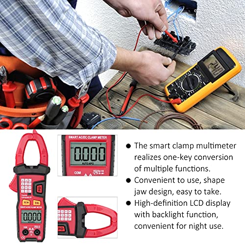 Srliya Smart Clamp Multimeter, Automatic Range AC DC Voltage Resistance Capacitance Tester, with One Key Test Function and Backlight LCD Display, for Measuring Voltage Resistance and