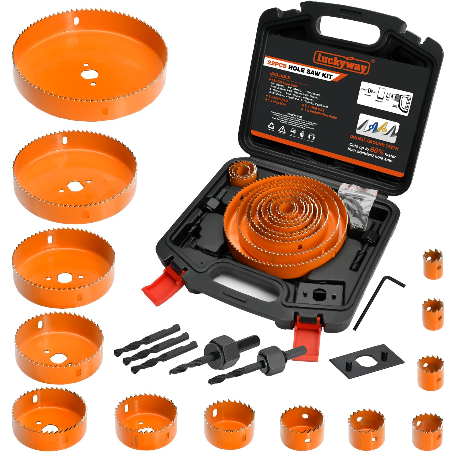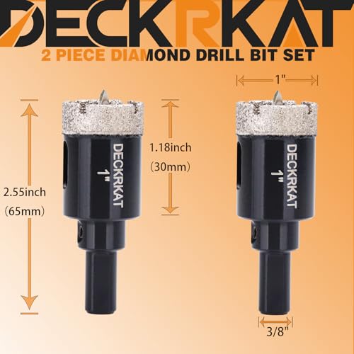 High-Quality Diamond Hole-Saw Bits: Includes two premium 1" diamond-tipped hole saws plus guiding pilot drill bits centrally placed for precision drilling on various hard surfaces.