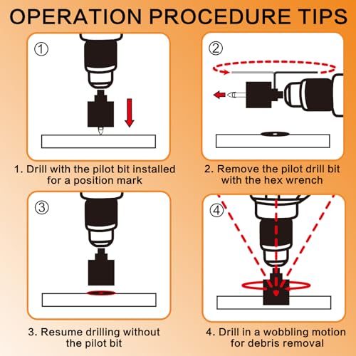 Instructions for Use: Start with the pilot bit for exact positioning, then remove the pilot bit, and use the main diamond hole saw in a wobbling motion to facilitate debris removal and achieve perfect holes with minimal force.