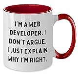 Generic Web Developer Coffee Mug | Funny Gifts for Web Developers | I Don't Argue. I Just Explain Why I'm Right. | Mother's Day Unique Gifts from Daughter to Mom, 11oz, White/Red