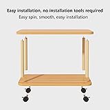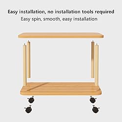 Spacious Desktop: Our wooden rotatable sofa side table has a spacious countertop that is sufficient to accommodate snacks, drinks, books, remote control, alarm clock, desk lamp and other daily leisure and entertainment essentials 360° Rotating Movable Side table: With wheels instead of table legs, our sofa side table can follow your trajectory and provide convenience at any time. Even if you have many items on it, it can smoothly move to any place you need High-quality Material: Constructed of high-grade MDF board and thickened solid wood frame, this nightstand is long-lasting that you can count on it to be a favorite for years to come. The wood makes it durable from any wear and tear. Weight capacity up to 150lb. Double-layer Storage& Log Style: The Simple sofa side table countertop is widened and the height between the two layers is also maximize, with sufficient capacity, and all kinds of living items can be easily classified and placed. Log style end table Large storage space layered storage for practicality, adds a cozy feeling Easy to Assemble: With illustrated instructions, this nightstand can be assembled within 2 min without effort. This Balcony leisure table has a simple structure, In one step, you only need to screw the table legs onto the desktop. so you can easily get a perfect table.